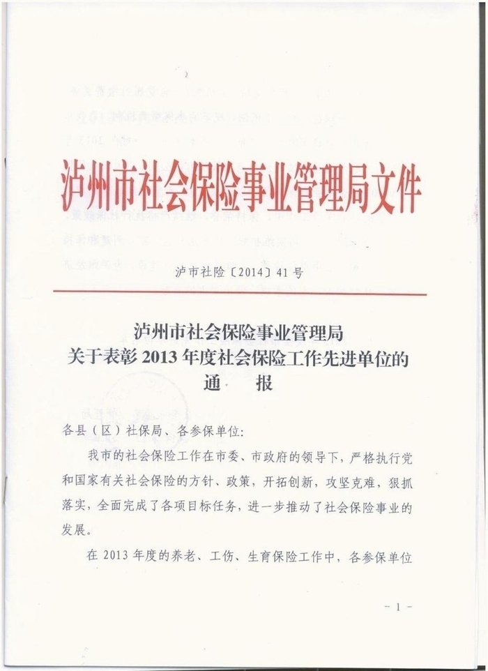 2014年社保表彰通報